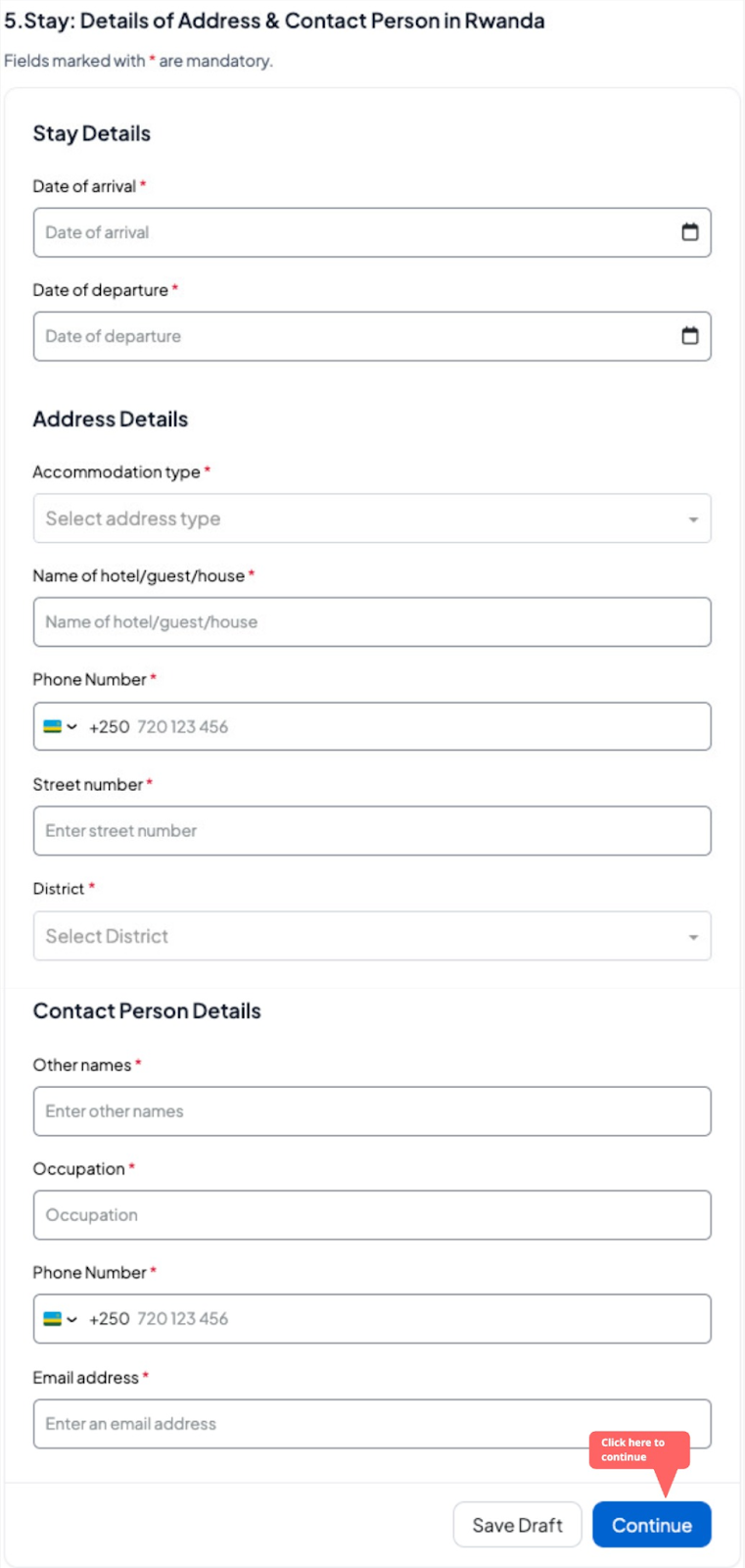 Enter the details of the address and contact person in Rwanda.
