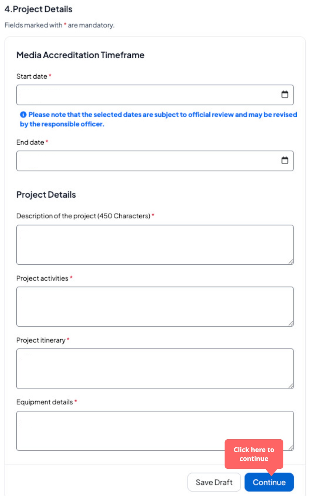 Fill in the required project details.