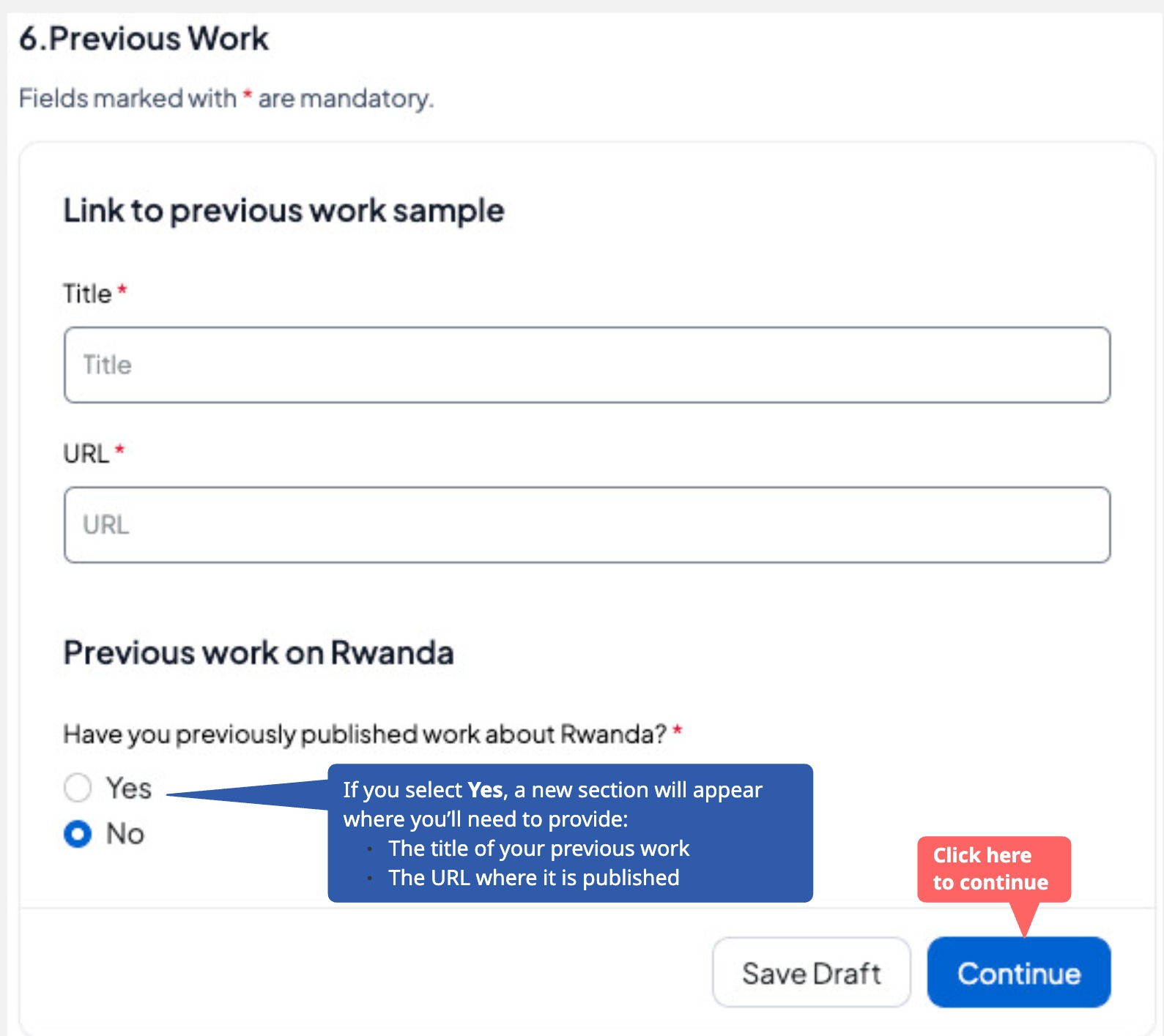 Fill in the Previous Work details