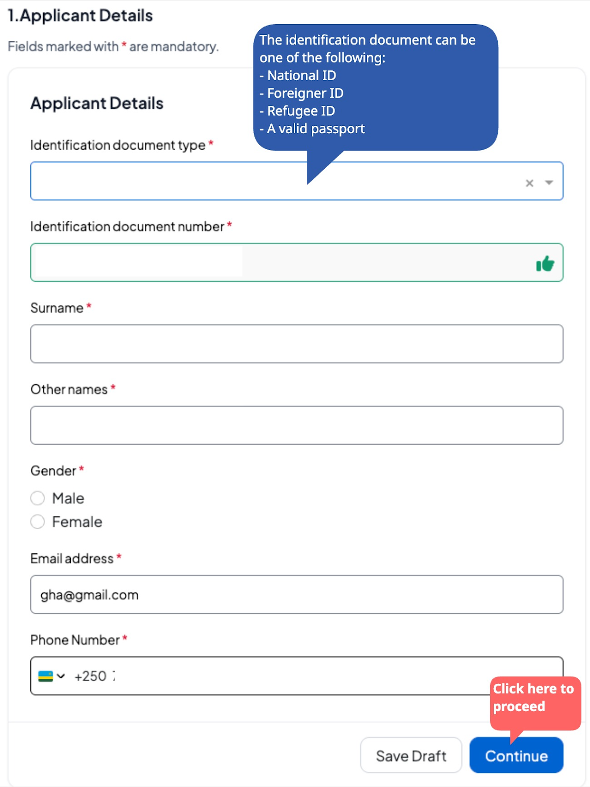 4. Enter the applicant details, select the gender, and fill in your contact details