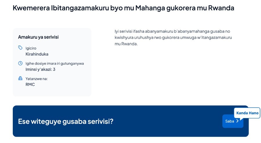 Iyi serivisi itangwa n’Urwego rw'Igihugu rw'Abanyamakuru Bigenzura (RMC) binyuze kuri IremboGov.