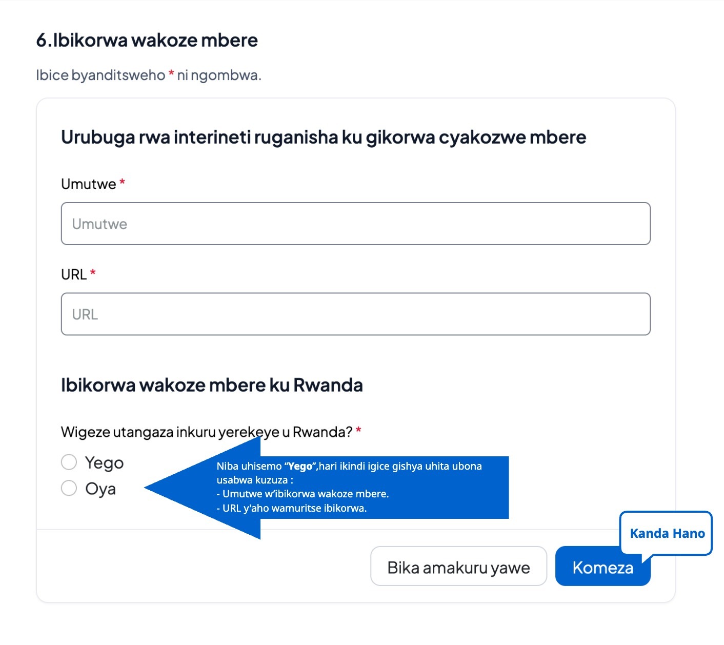 Shyiramo amakuru y’ibikorwa wamuritse mbere.